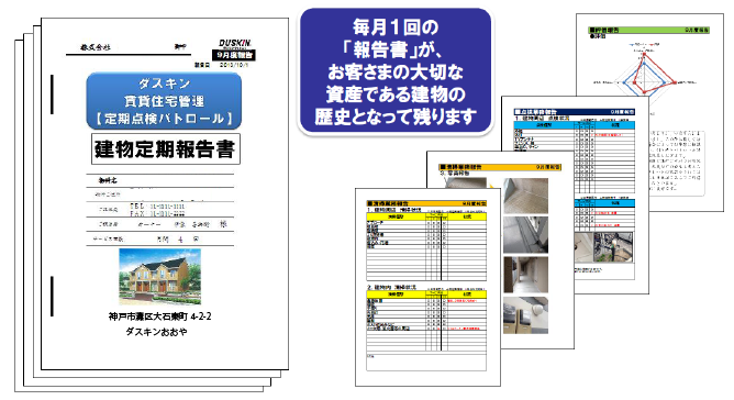 毎月1回、大切な建物の状態を記載した報告書をお届けいたします