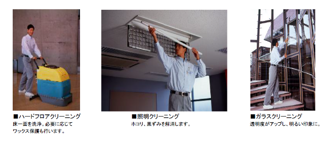 日常清掃のほかに、専用の資器材と薬剤による専門清掃サービスで、定期的にお手入れ